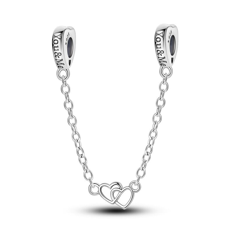 Romantická bezpečnostná retiazka s dvomi prepojenými srdiečkami symbolizuje silné puto, lásku a spojenie dvoch duší. Jemný a elegantný dizajn s nápisom „You & Me“ dodáva šperku osobný význam a zároveň pomáha bezpečne uchytiť prívesky na náramku. Krásny doplnok aj milý darček pre niekoho výnimočného.