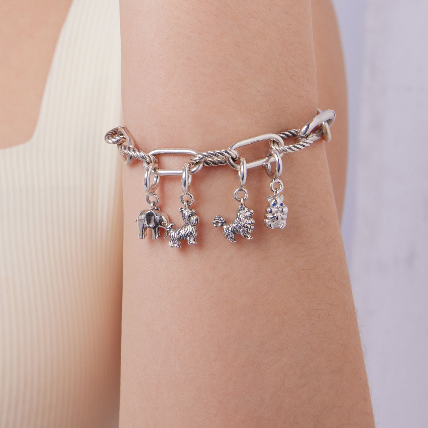 Detailne prepracovaný strieborný prívesok v tvare psíka s huňatou srsťou. Tento roztomilý doplnok je dokonalým darčekom pre milovníkov psov a domácich miláčikov. Vhodný na náramky typu Pandora, retiazky alebo kľúčenky. Symbol vernosti, radosti a priateľstva.