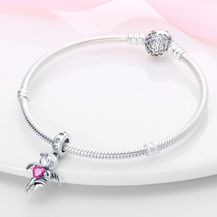 Táto nádherná korálka Anjel lásky symbolizuje ochranu, lásku a starostlivosť. Jemne vypracovaná postavička anjelika drží v rukách srdce zo žiarivého ružového kryštálu, ktoré vyjadruje čistotu citu a silu emócií.