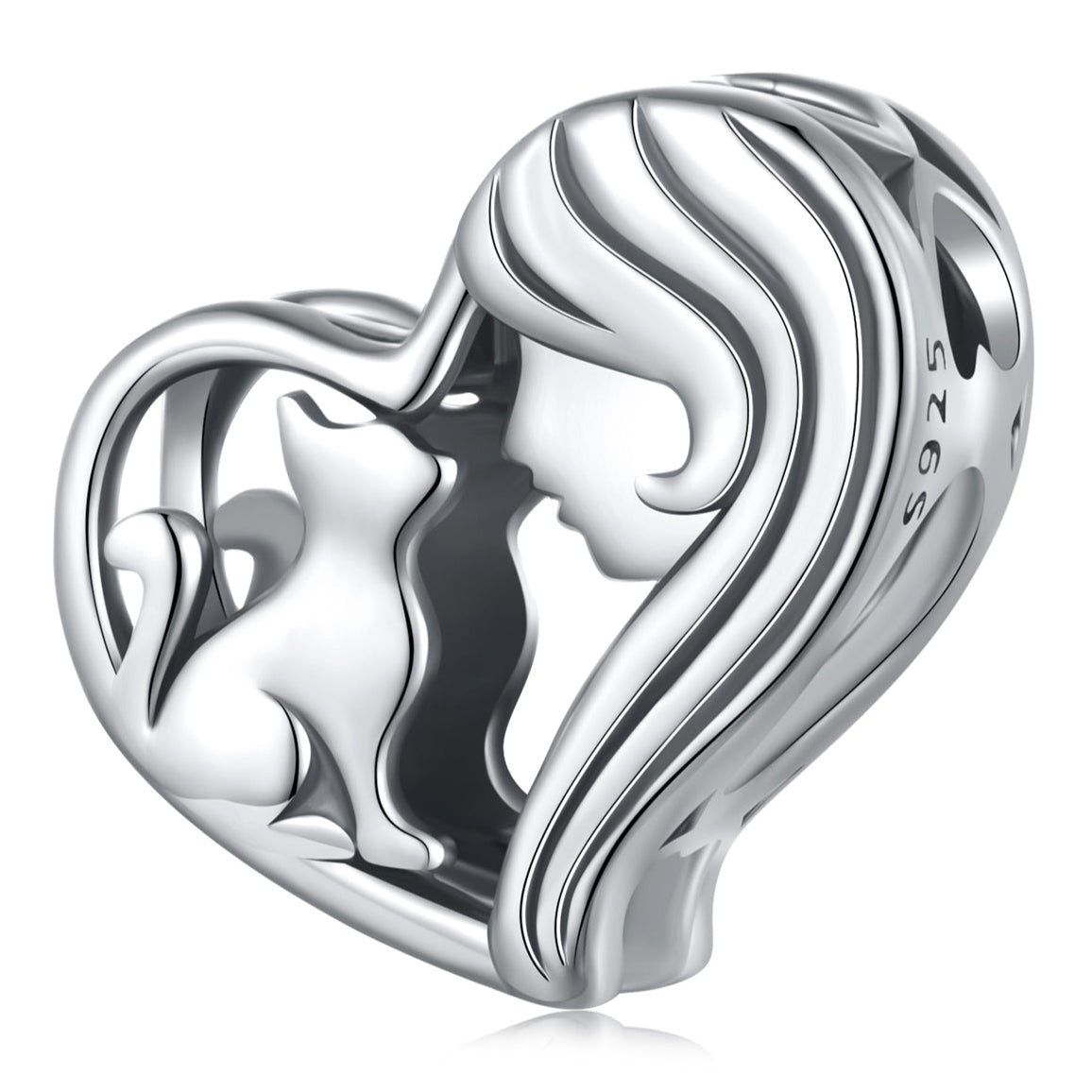 Roztomilá korálka Priateľstvo s mačkou symbolizuje nežné puto medzi človekom a jeho štvornohým miláčikom. Jemný dizajn zobrazuje dievča a mačku, ktoré sa láskyplne pozerajú jedna na druhú, pričom ich siluety tvoria harmonický tvar srdca.