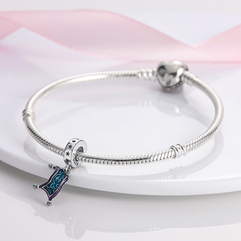 Tento kúzelný prívesok v tvare lietajúcej tapisérie v odtieňoch modrej a fialovej prináša do vášho náramku nádych fantázie a dobrodružstva. Jemné detaily pripomínajú tajomné vzory z rozprávkového sveta a dodajú vašej zbierke originálny, magický šarm.