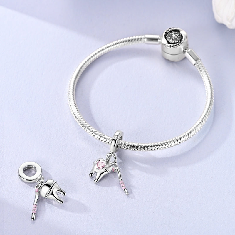 Originálny prívesok pre tých, ktorí majú úsmev v srdci – alebo sa starajú o úsmevy druhých. Strieborný zúbok so srdiečkom z ružového zirkónu je doplnený miniatúrnou kefkou s ružovým smaltom. Nežný a hravý šperk, ideálny ako darček pre zubárov, dentálnych hygienikov alebo milovníkov úsmevu.