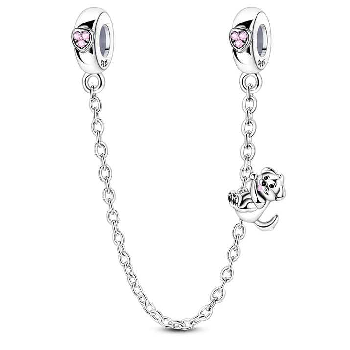Roztomilá ochranná retiazka so šteniatkom je ideálnym doplnkom pre váš náramok. Jemné ružové srdiečka dodávajú šperku nežnosť, zatiaľ čo hravý psík prináša radosť a osobitý štýl. Retiazka chráni náramok pred pádom pri otváraní a zároveň ho krásne ozdobí.