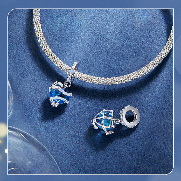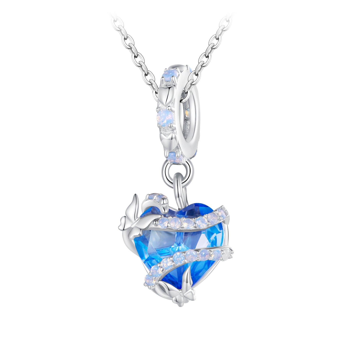 Pôsobivý prívesok v tvare modrého srdca evokuje hĺbku oceánu a slobodu morských diaľok. Žiarivý brúsený kameň je elegantne obopnutý jemnými líniami zdobenými trblietavými kamienkami, ktoré šperku dodávajú luxusný a romantický nádych. Ideálny doplnok pre milovníkov mora, cestovania aj výrazných šperkov, ktoré upútajú na prvý pohľad.