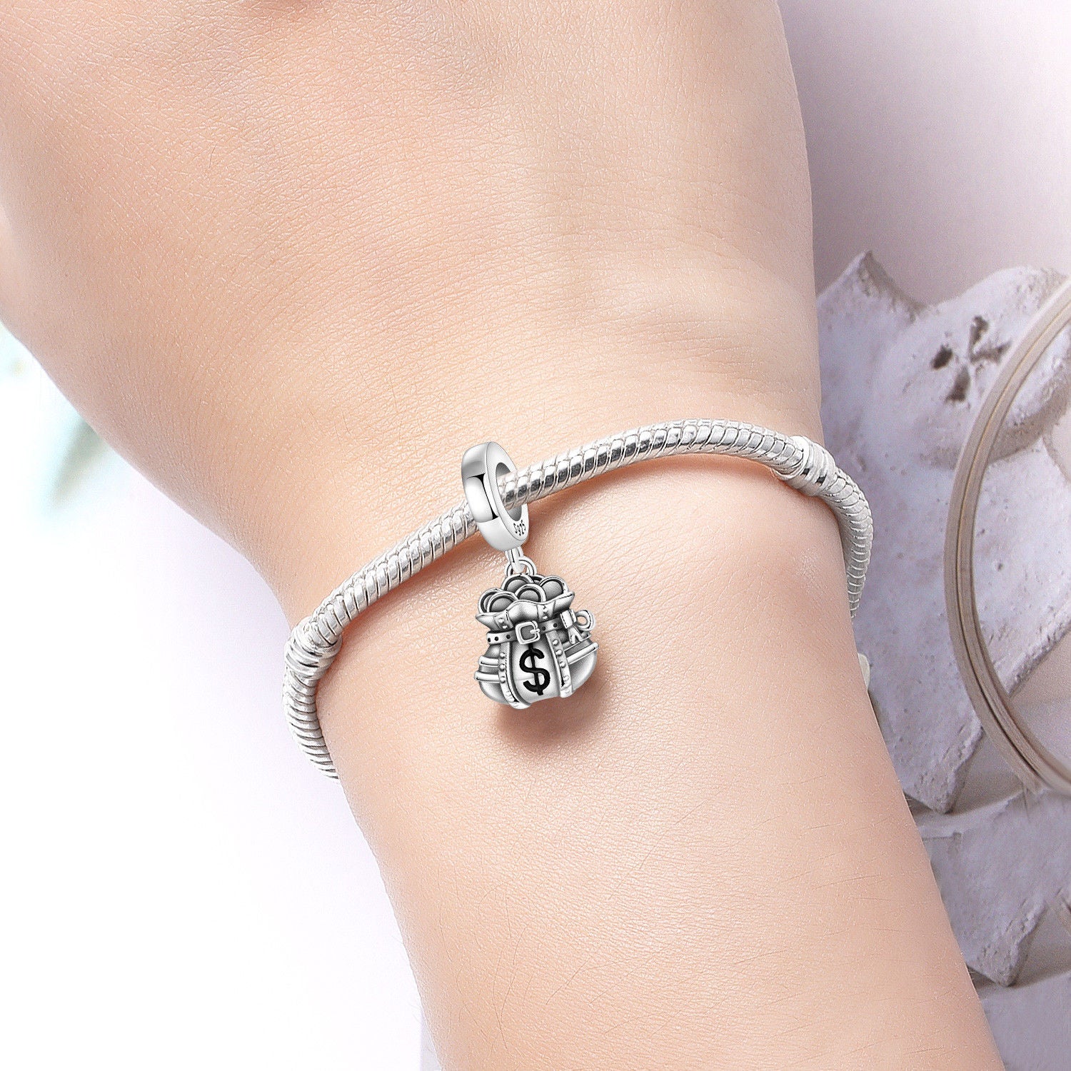 Strieborný prívesok Mešec bohatstva je symbolom hojnosti, prosperity a finančného šťastia. Detailne prepracovaný mešec s ikonickým znakom dolára pripomína sny o úspechu a splnených cieľoch. Je ideálnym talizmanom pre každého, kto si chce do života pritiahnuť prosperitu a sebavedomie.