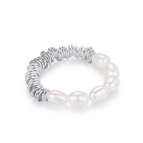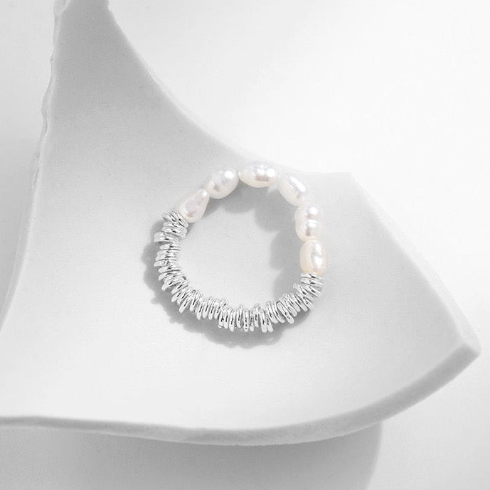 Jemný a elegantný strieborný prsteň s perlami, ktorý pôsobí nežne a nadčasovo. Vyrobený zo striebra a navrhnutý v jednoduchom štýle, ľahko sa kombinuje s každodenným aj slávnostným outfitom a dodáva rukám prirodzenú eleganciu. Ideálny ako darček alebo štýlový doplnok pre milovníčky minimalistických šperkov.
