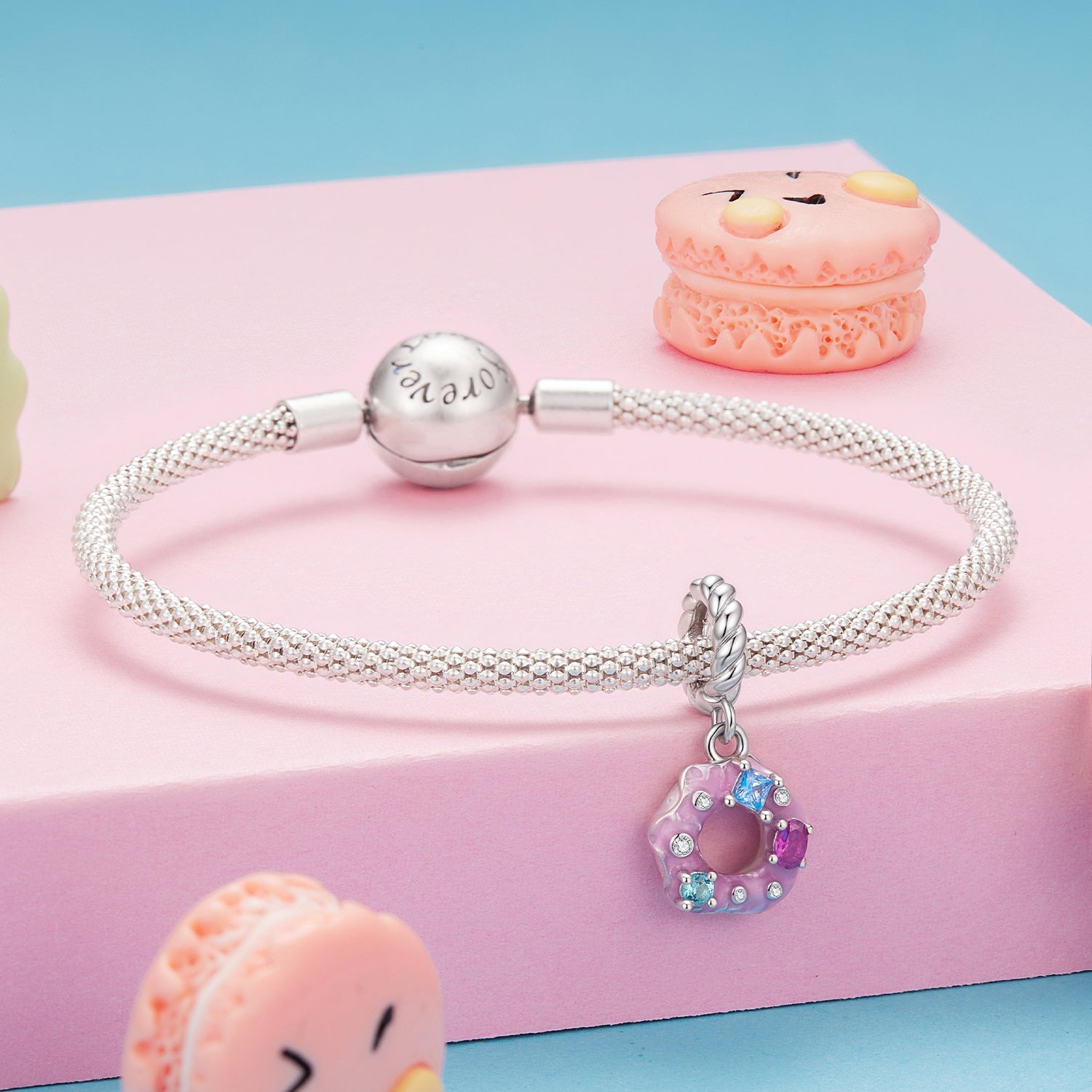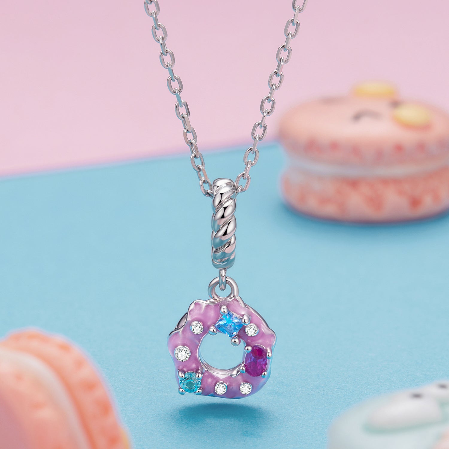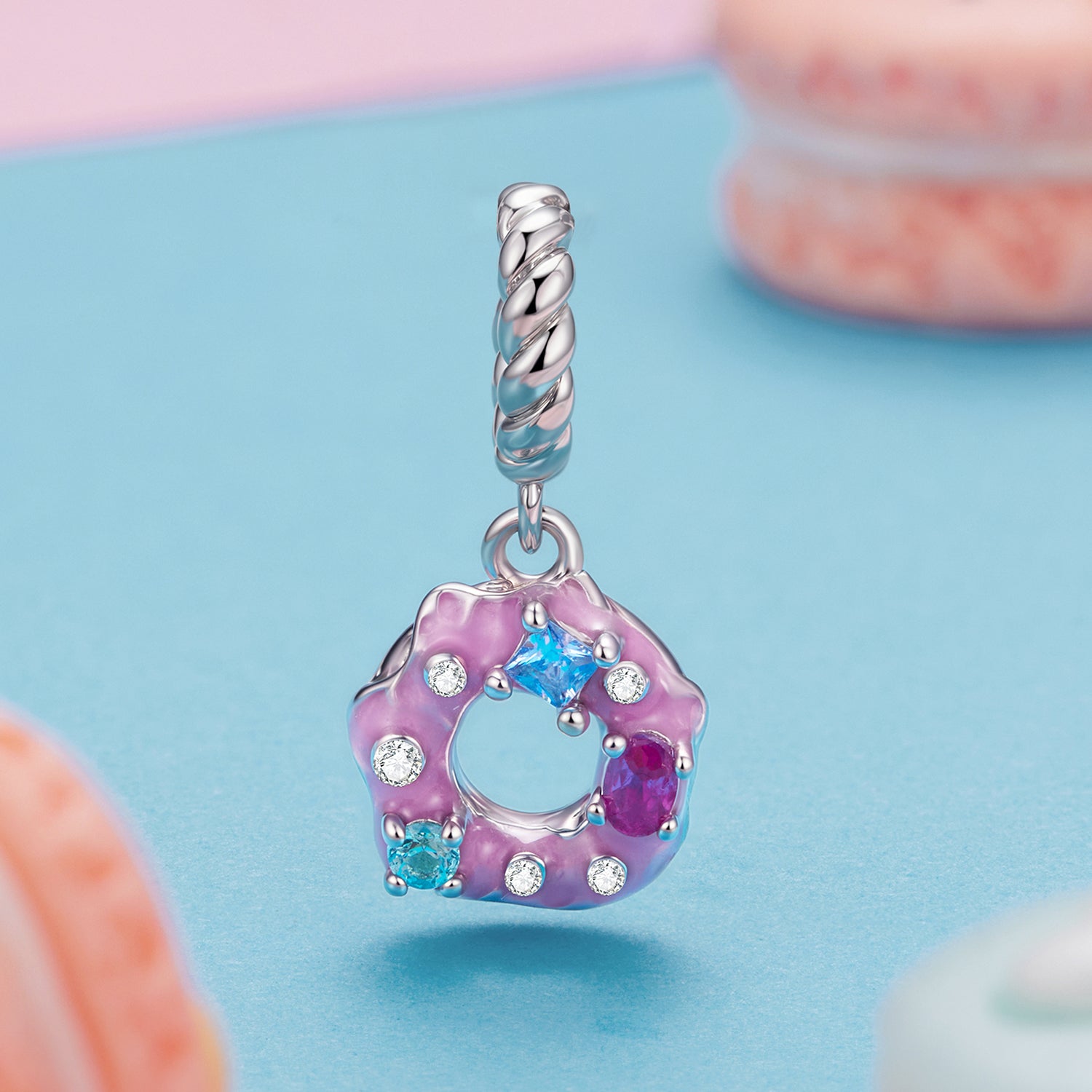 Pridajte do svojho náramku štipku hravosti s týmto originálnym príveskom v tvare donutu. Ružová glazúra pôsobí ako cukrová poleva, zatiaľ čo farebné kamene – modré, ružové a tyrkysové cirkóny – pripomínajú sladké posýpky. Šperk je veselým symbolom radosti zo života a malých každodenných potešení.