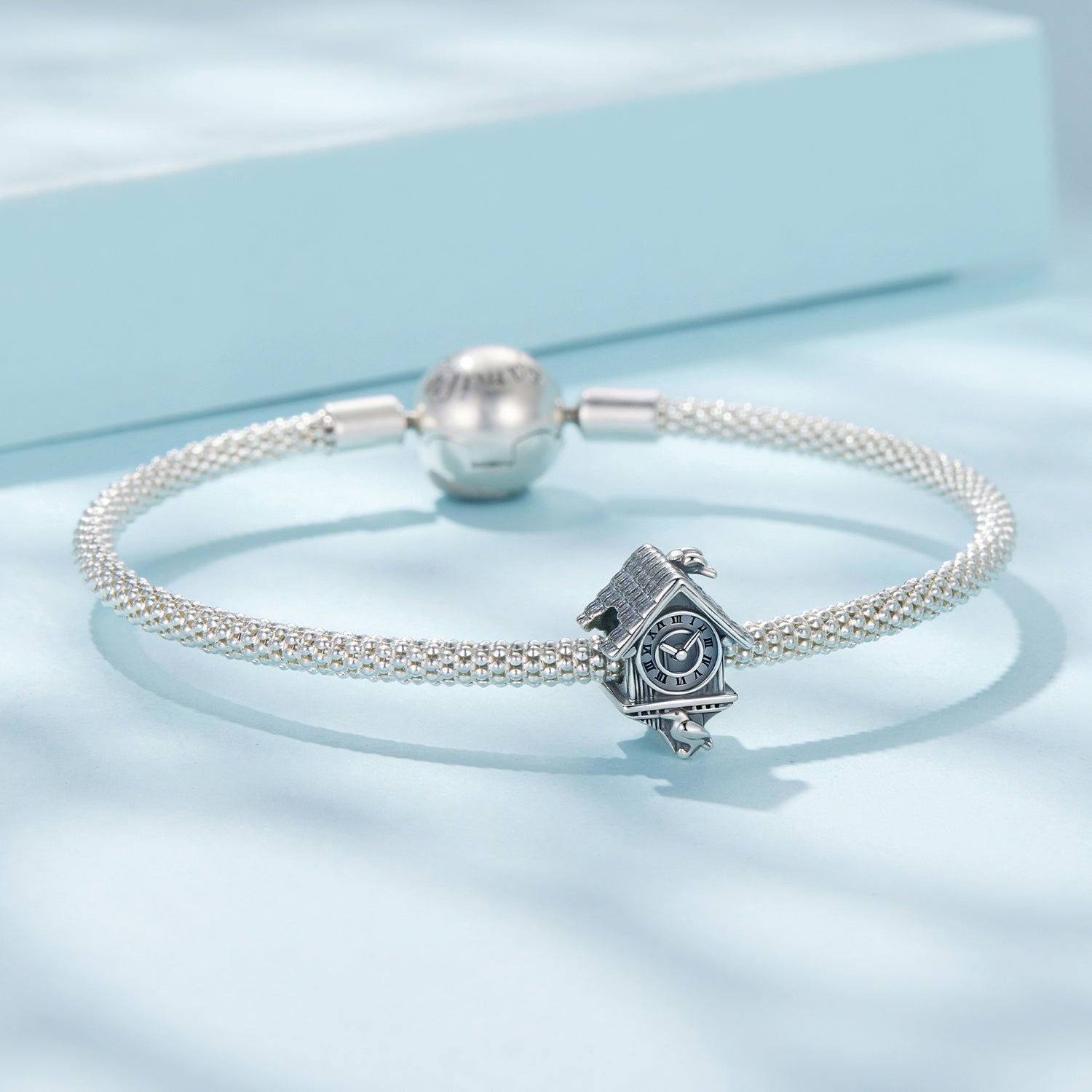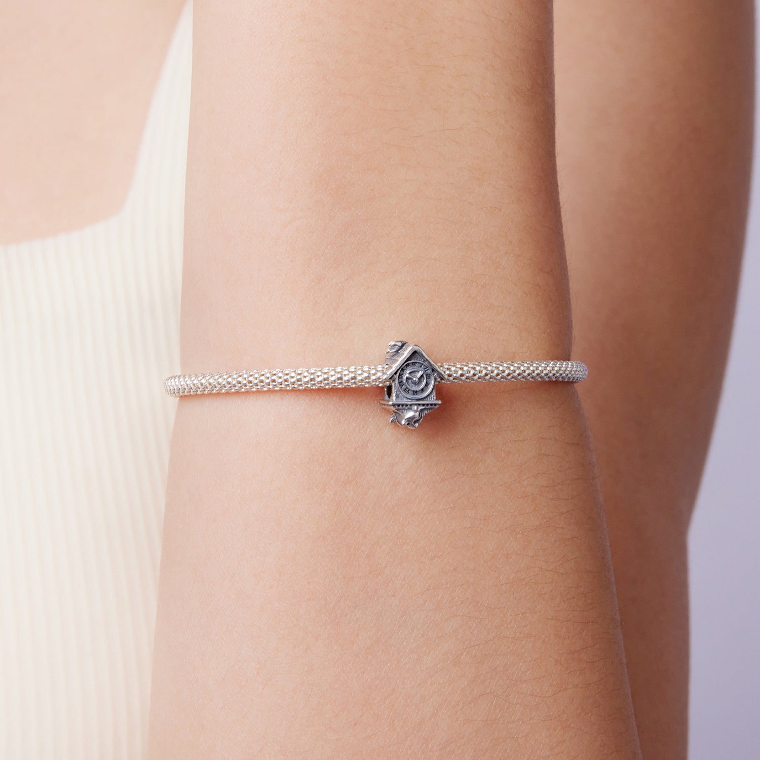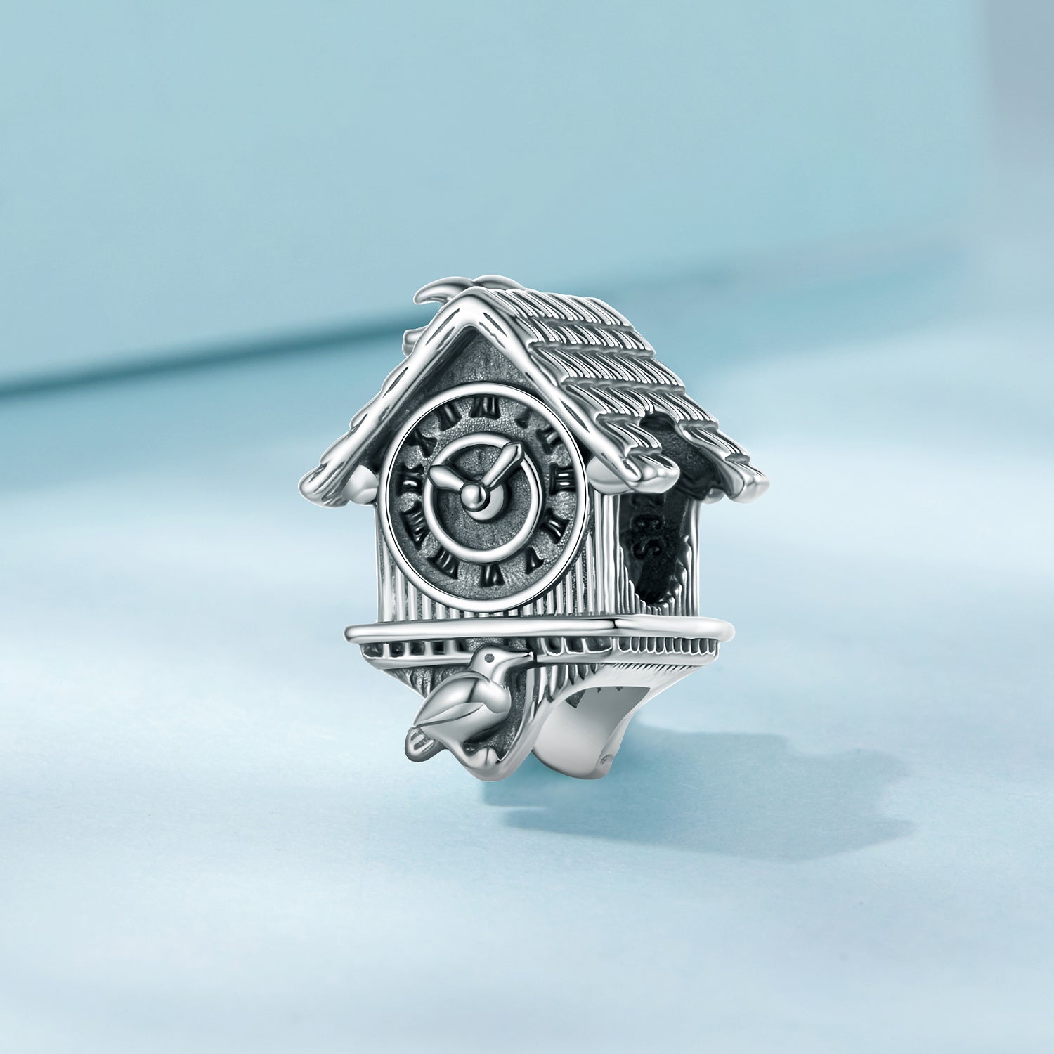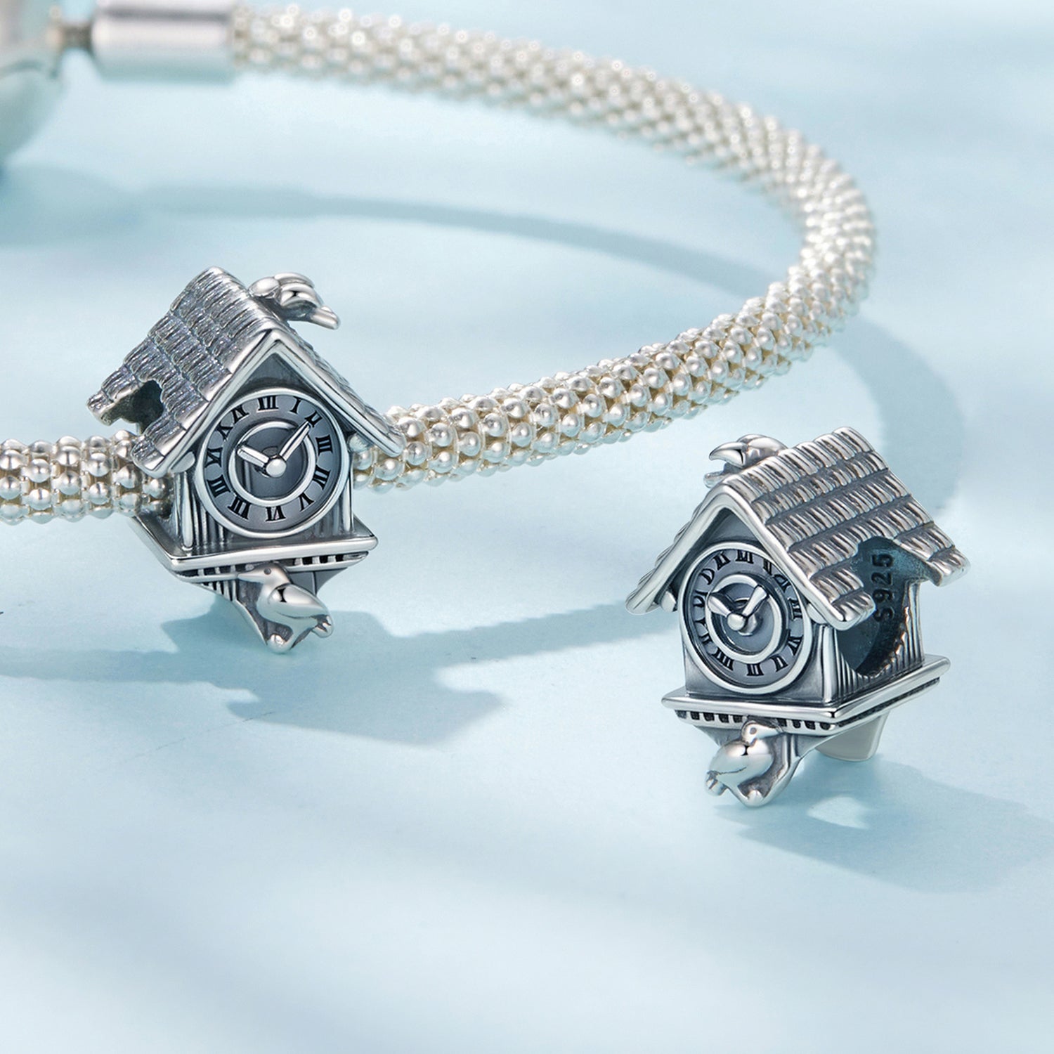 Tento jedinečný strieborný prívesok v tvare hodín s kukučkou vás prenesie do sveta nostalgie a spomienok na domov plný tepla. Precízne vypracované detaily – od rímskych číslic až po malého vtáčika – robia z tohto šperku skutočné umelecké dielo. Symbolizuje čas, ktorý si vážime, a chvíle, ktoré chceme uchovať navždy.