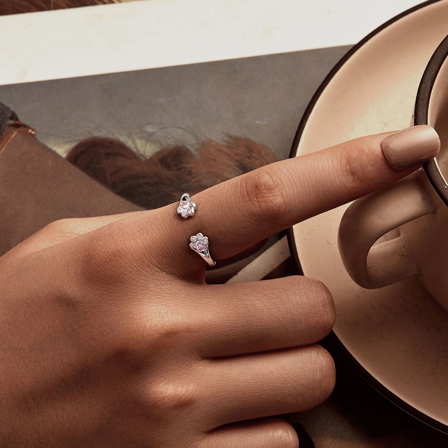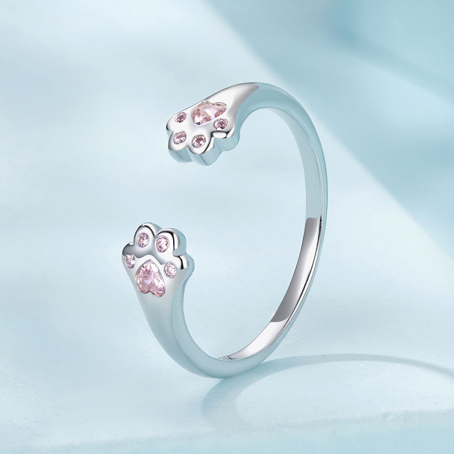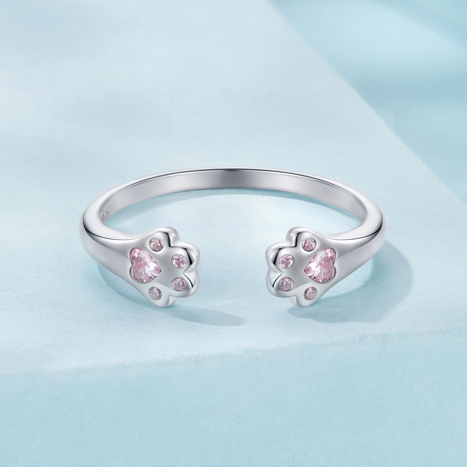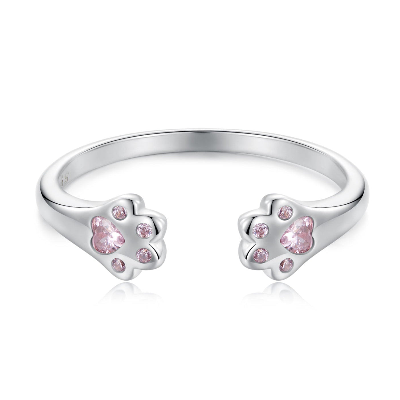 Strieborný prsteň Labky s ružovými kryštálmi