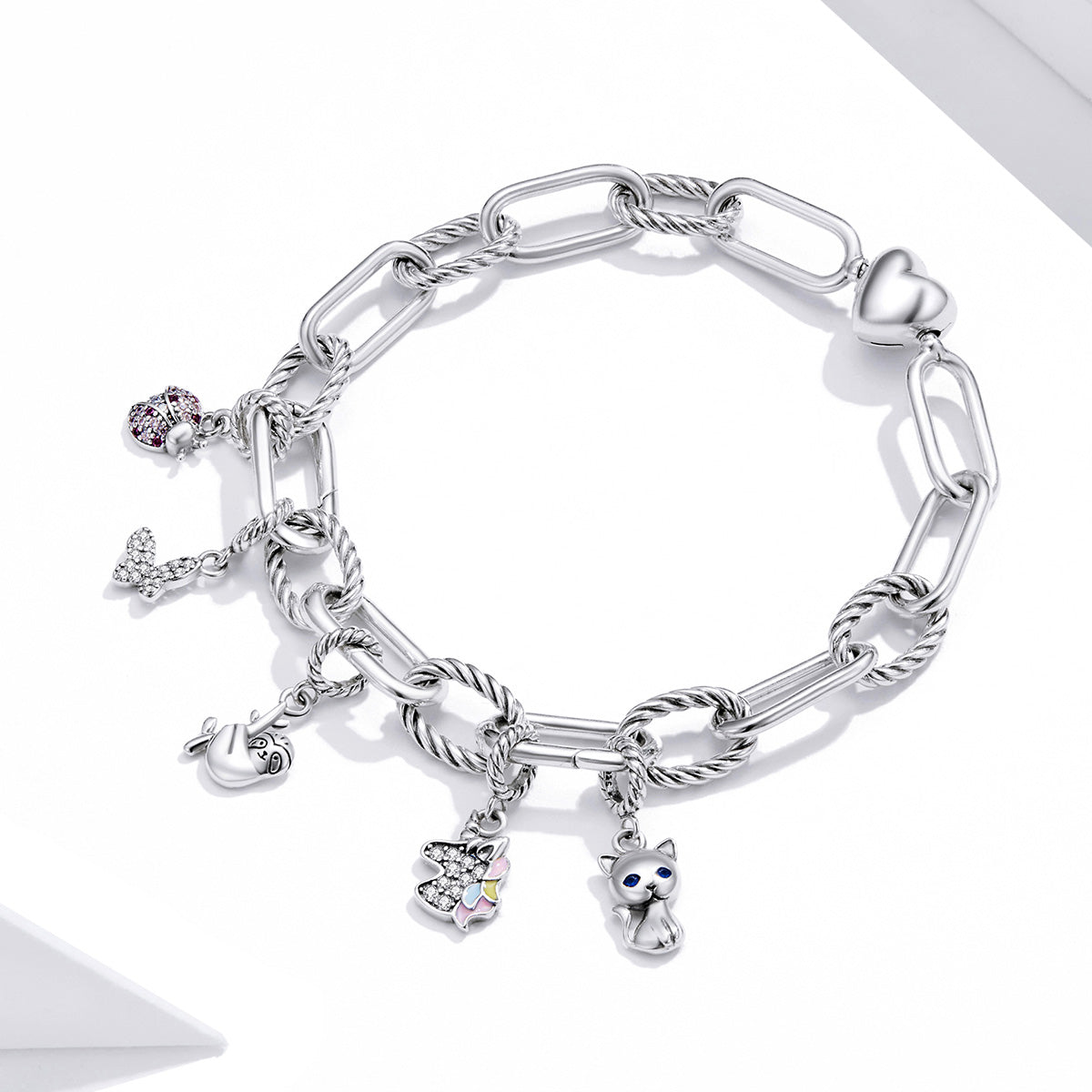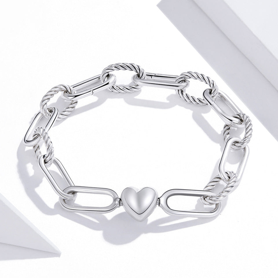 Moderný a štýlový náramok vyrobený z rýdzeho striebra 925, ktorý spája výrazné články a elegantné točené detaily. Stredobodom náramku je jemné srdiečko – symbol lásky a spojenia. Minimalistický dizajn vhodný na každodenné nosenie aj ako darček z lásky.