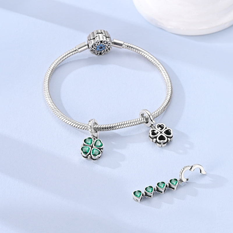 Elegantný prívesok v tvare štvorlístka zdobený zelenými kamienkami v tvare srdca symbolizuje šťastie, nádej a pozitívnu energiu. Jemný lesk a harmonický dizajn robia zo šperku krásny doplnok na každý deň aj milý talizman pre šťastie. Ideálny darček pre niekoho, komu chcete popriať veľa radosti a úspechov.